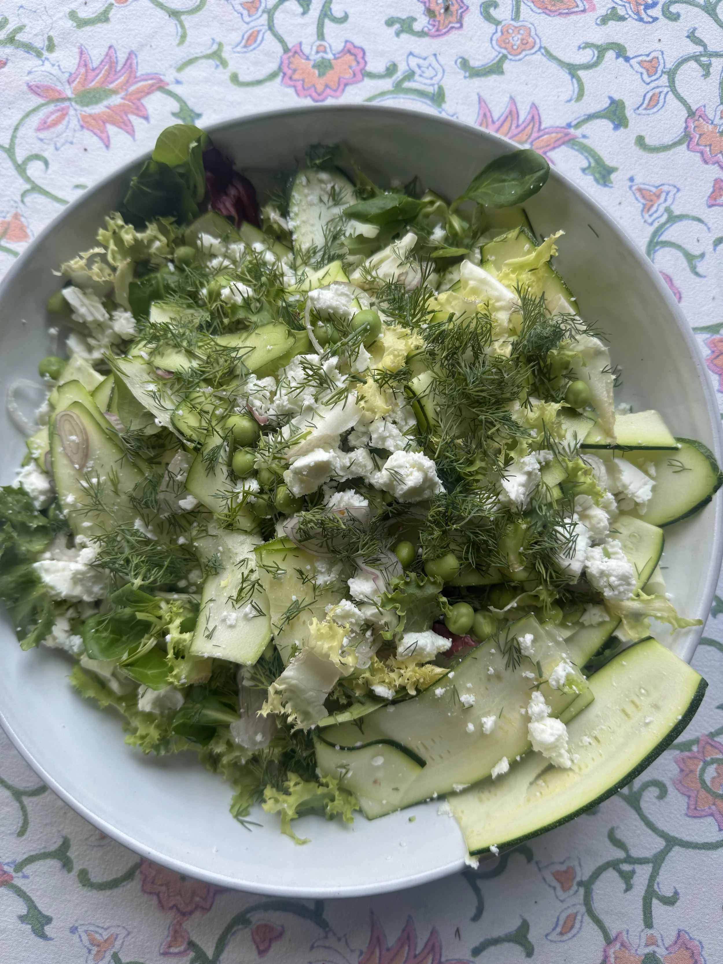 kristine Bernhoft 28.07.2025 kristine Bernhoft 28.07.2025 Frissé salat med tyndtskåret cougetter, skalotteløg, dild, feta & friske ærter Læs mere